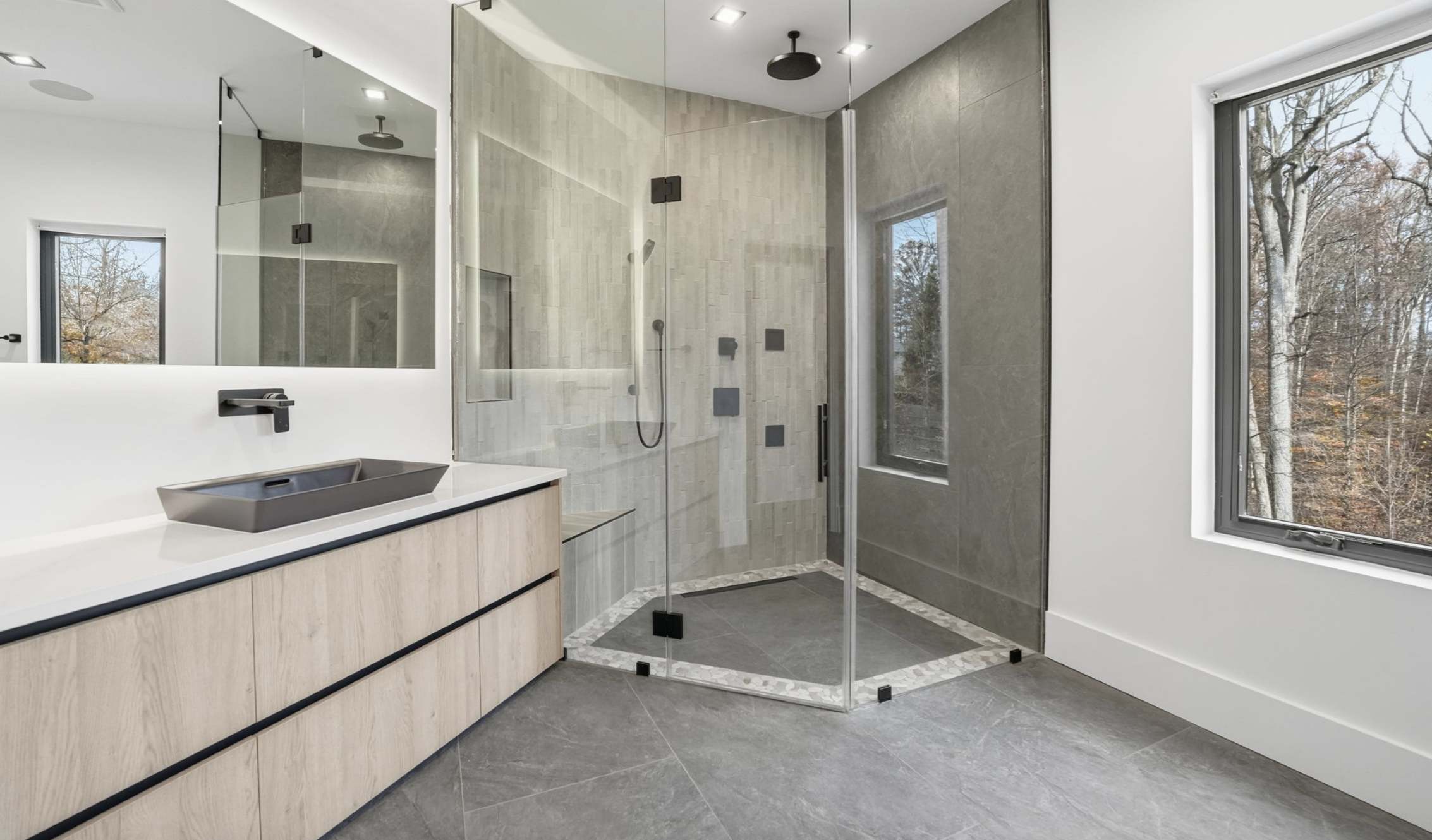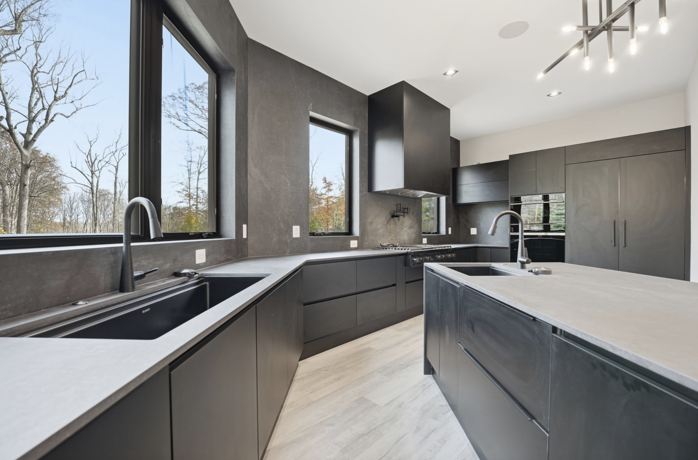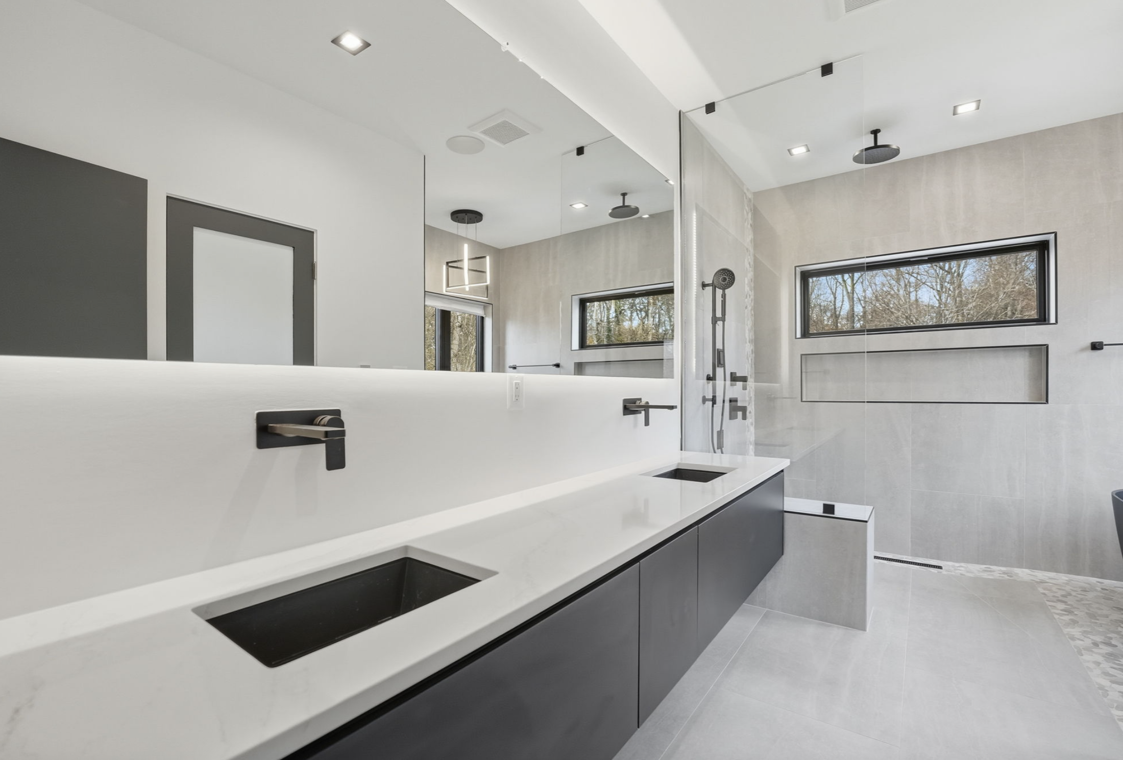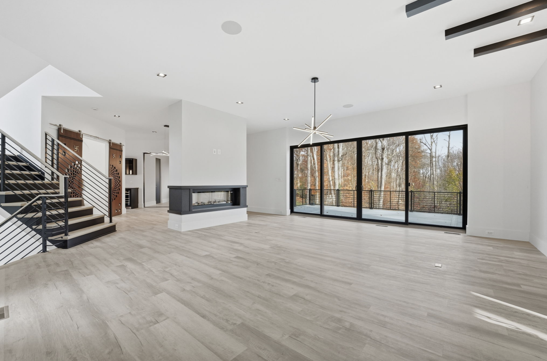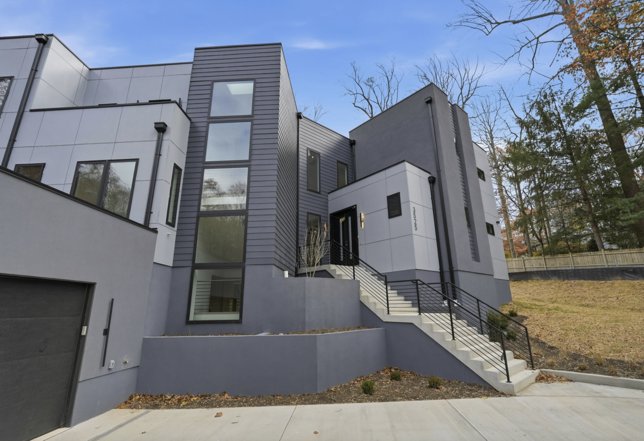 Modern contemporary architecture. Elevator from basement to 2nd floor. Two car front load garage.