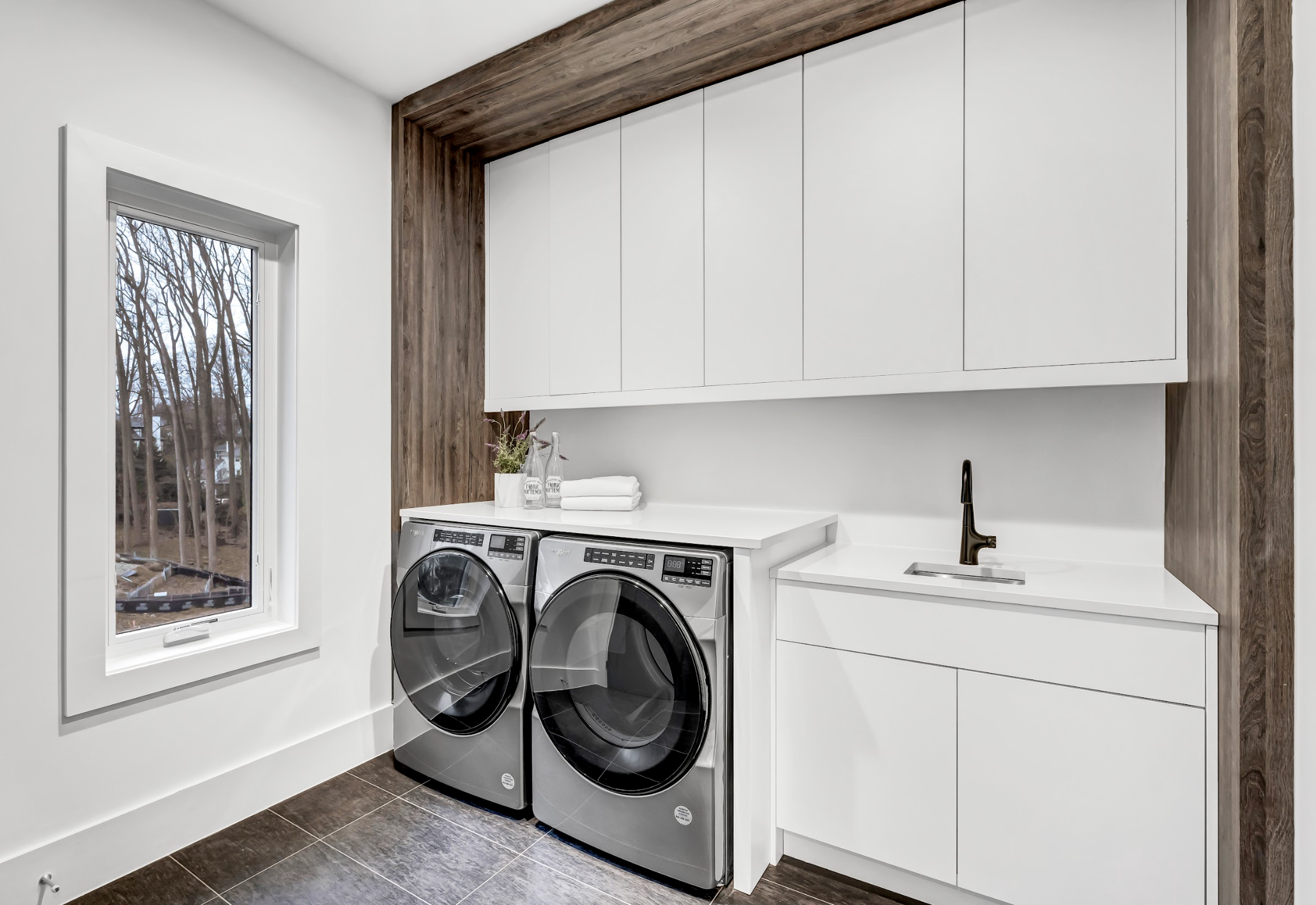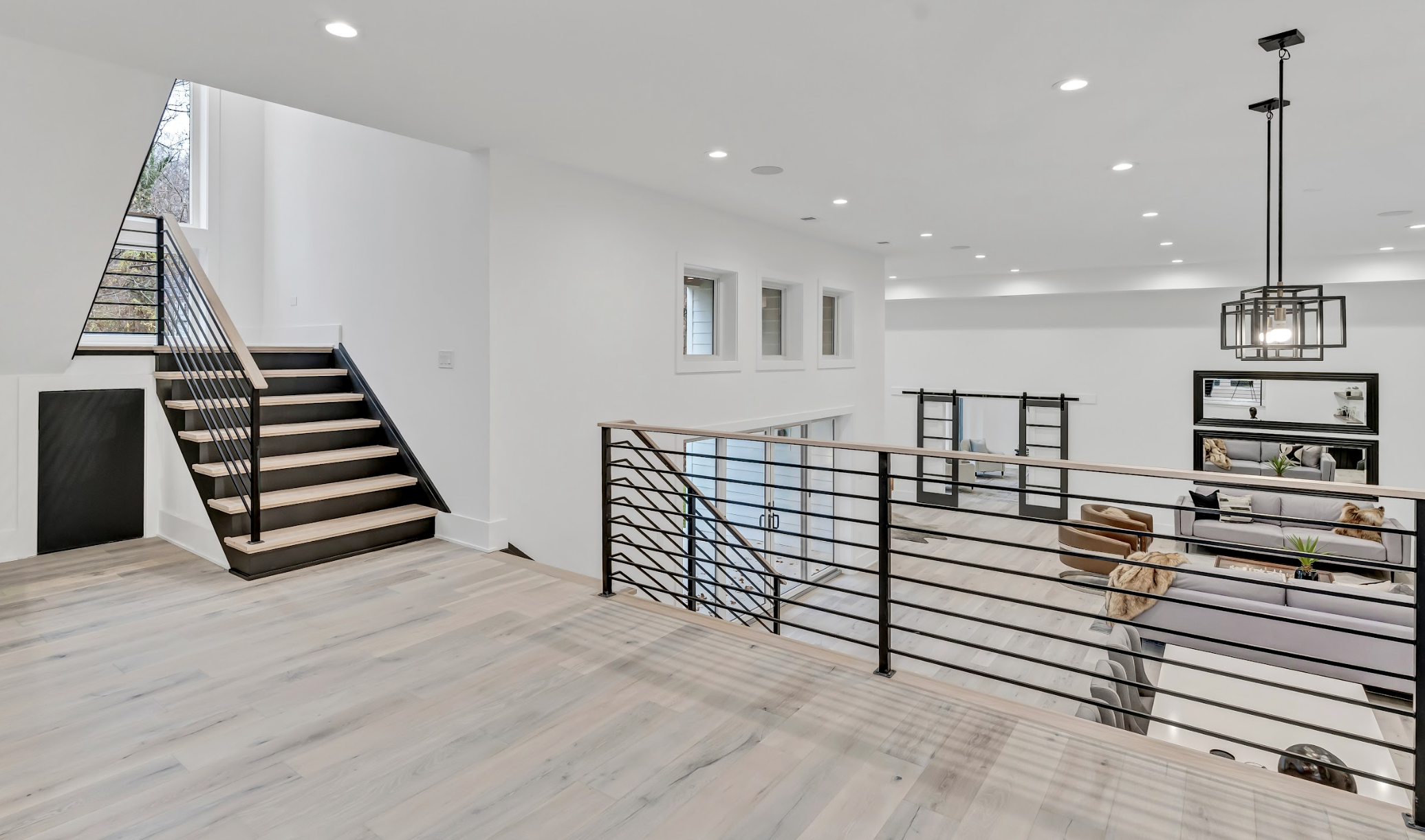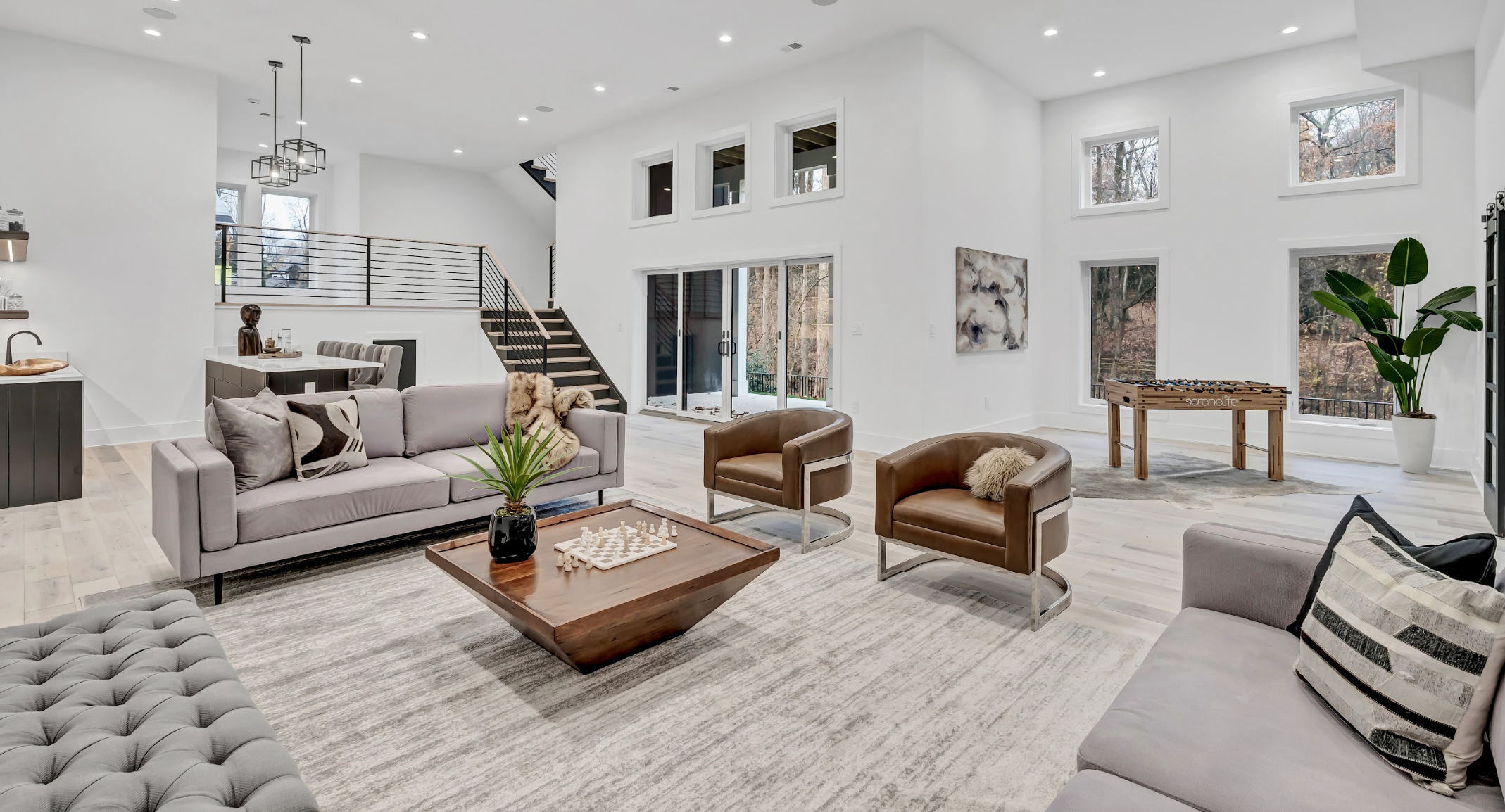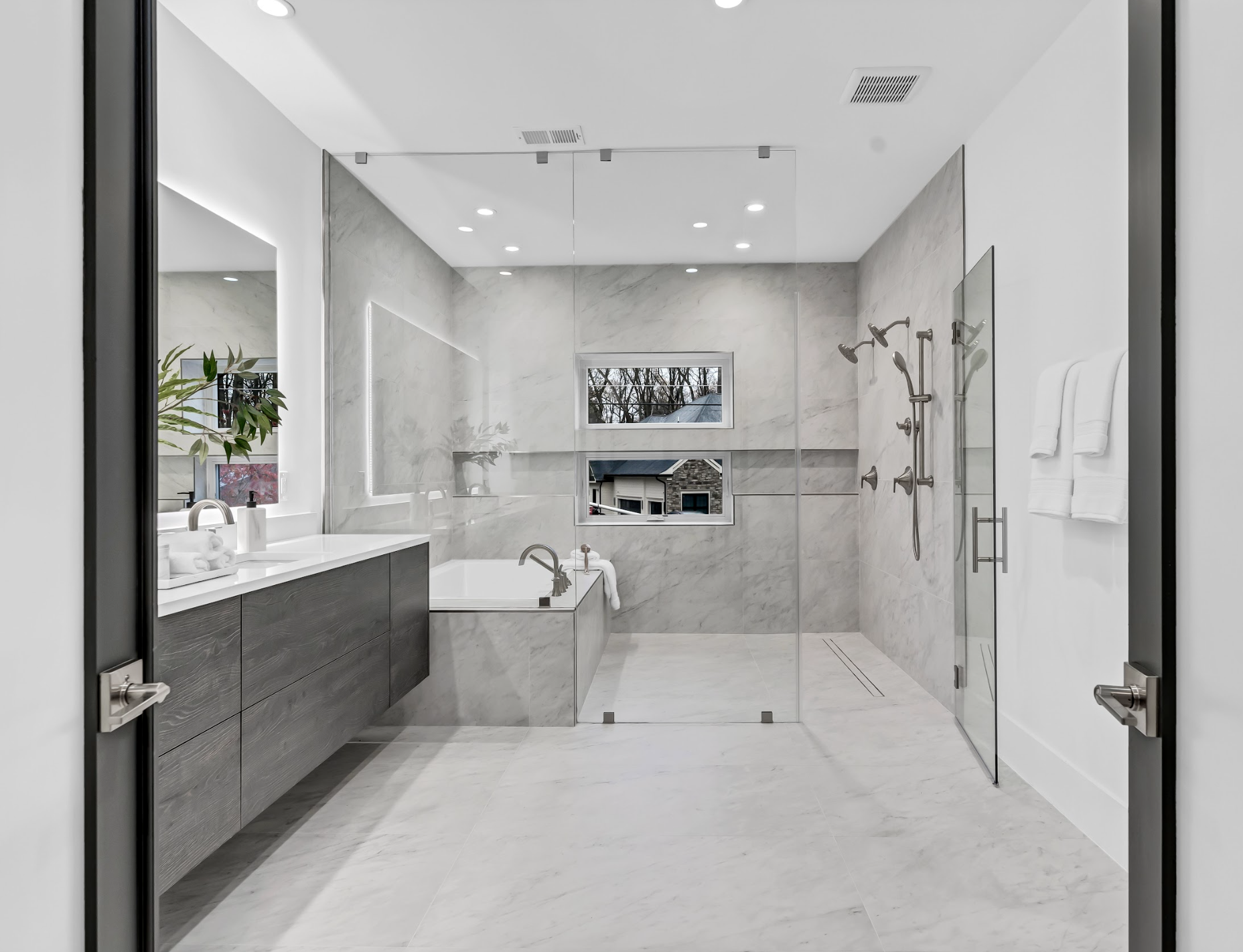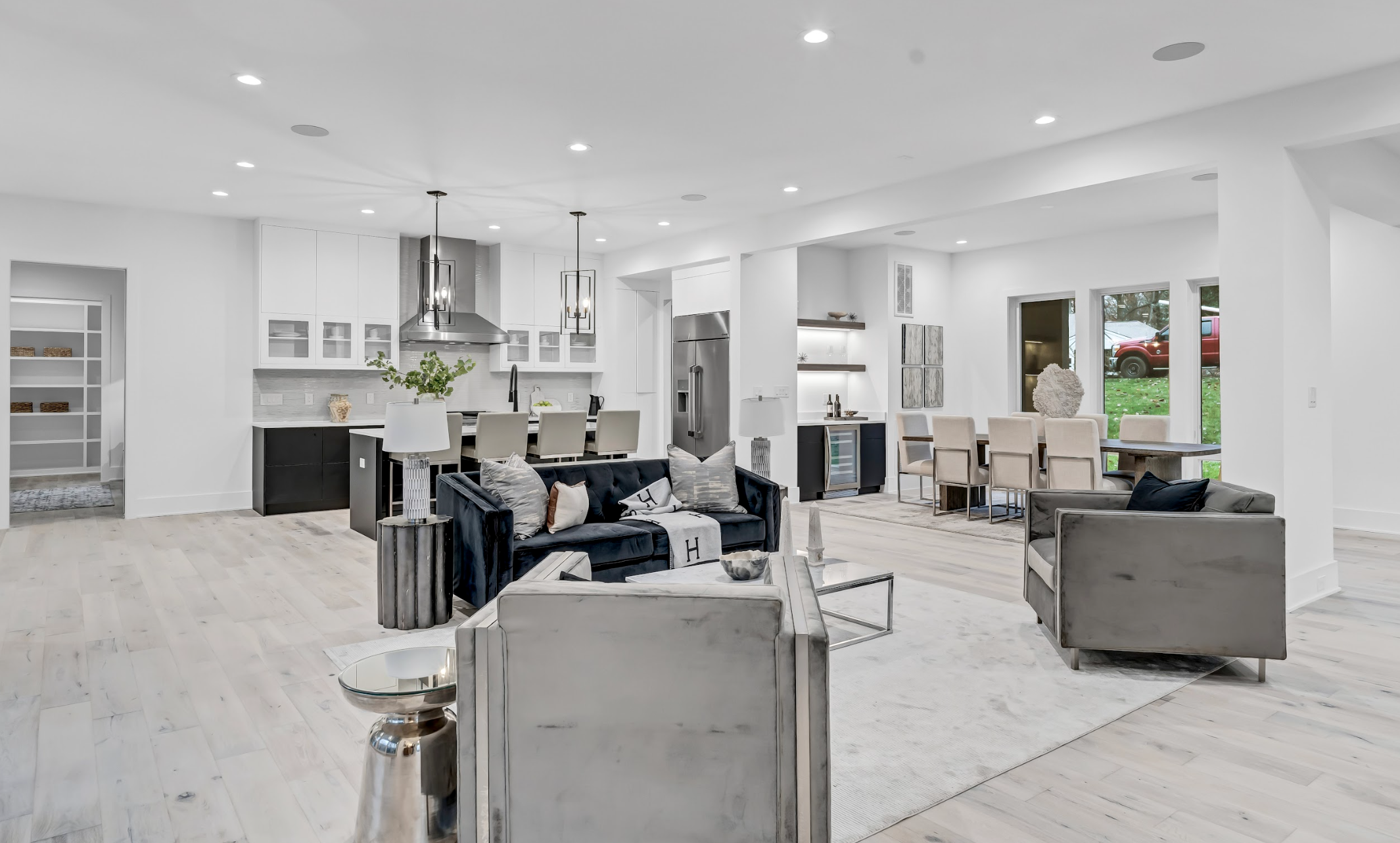 First Floor: Family room with linear gas fireplace, large kitchen and prep kitchen, breakfast area, office space, living and dining rooms, mudroom with washer and dryer, powder room.